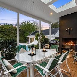 The outdoor spaces are an extension of the home's personality. Wide decks and paved courtyards wrap around the living areas, with the heated saltwater pool and outdoor fireplace providing a focal point for year-round entertaining. From long summer afternoons poolside to cosy evenings by the fire, the home invites every season to be celebrated.