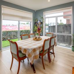 Walk into a spacious light kitchen and dining combined. Galley kitchen with plenty of cupboards. Wide bench space makes for easy food preparation. Large storage cupboard that can double as an extra pantry.