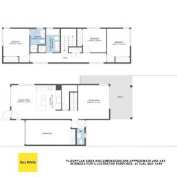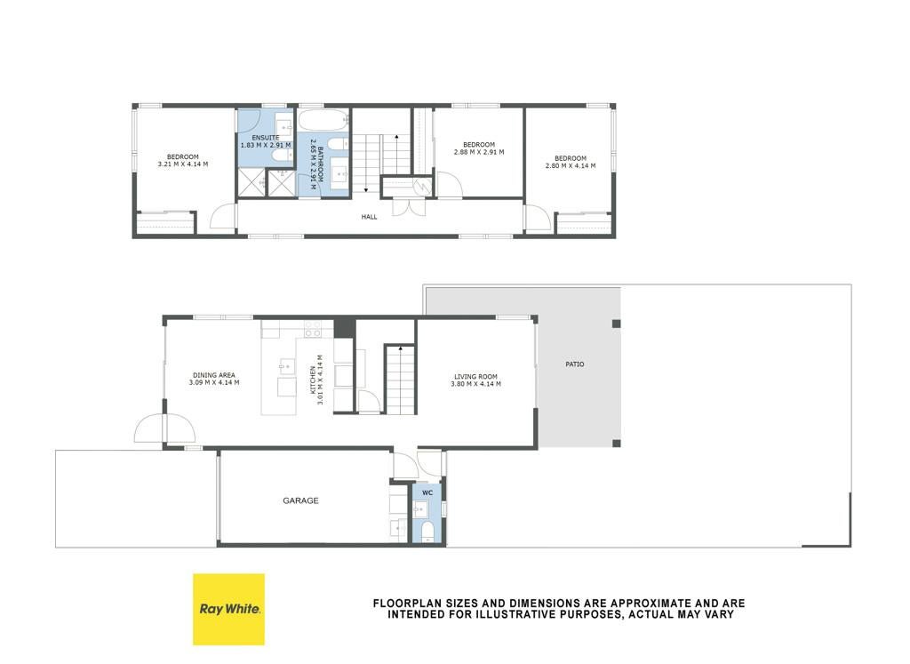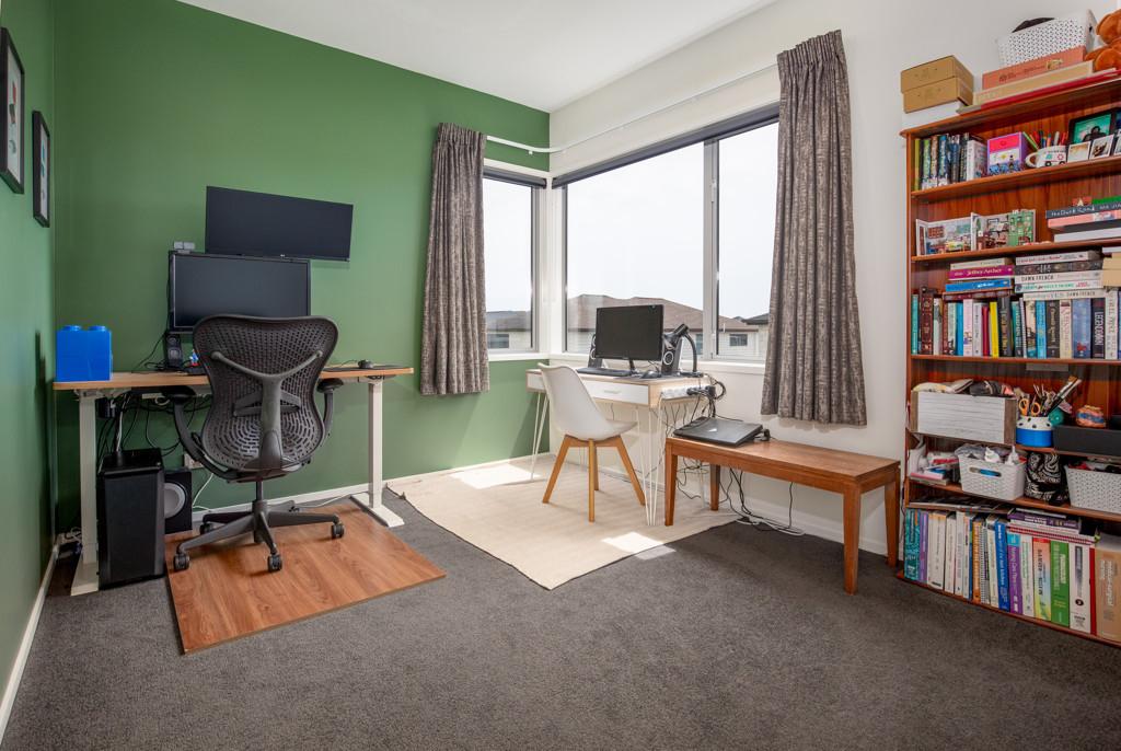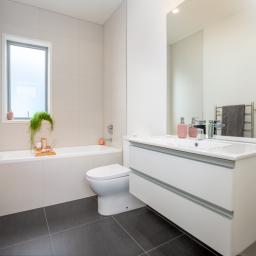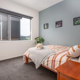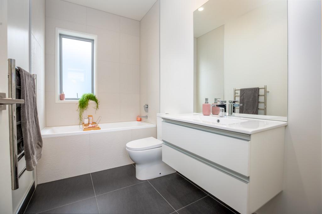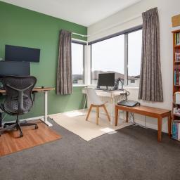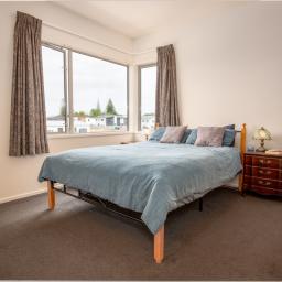 A wide stair case leads to 3 double bedrooms, all with wardrobes. Master with ensuite. Main bathroom has a shower, bath and combined toilet. Linen cupboard has a large hot water cylinder that doubles as an airing cupboard.