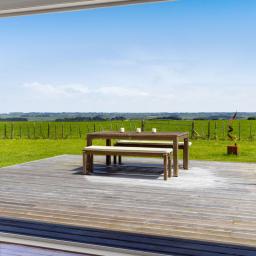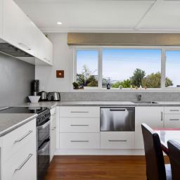 The home offers three bedrooms and open-plan living that flows effortlessly onto a spacious sun-drenched deck - perfect for enjoying the sweeping outlook. The modern kitchen features quality fittings, while the bathroom includes a wet-floor shower and underfloor heating for comfort and convenience.