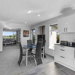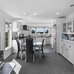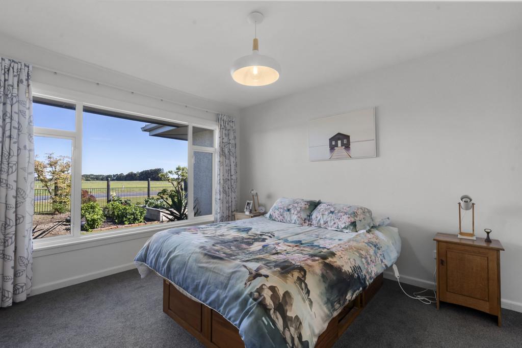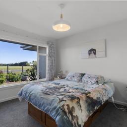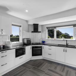 The inviting open-plan living area is the perfect place to unwind, complete with a cosy log burner to keep you snug through the cooler months. Large windows capture the beautiful rural outlook, filling the home with natural light and framing serene views of the surrounding countryside.