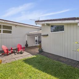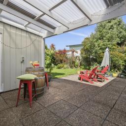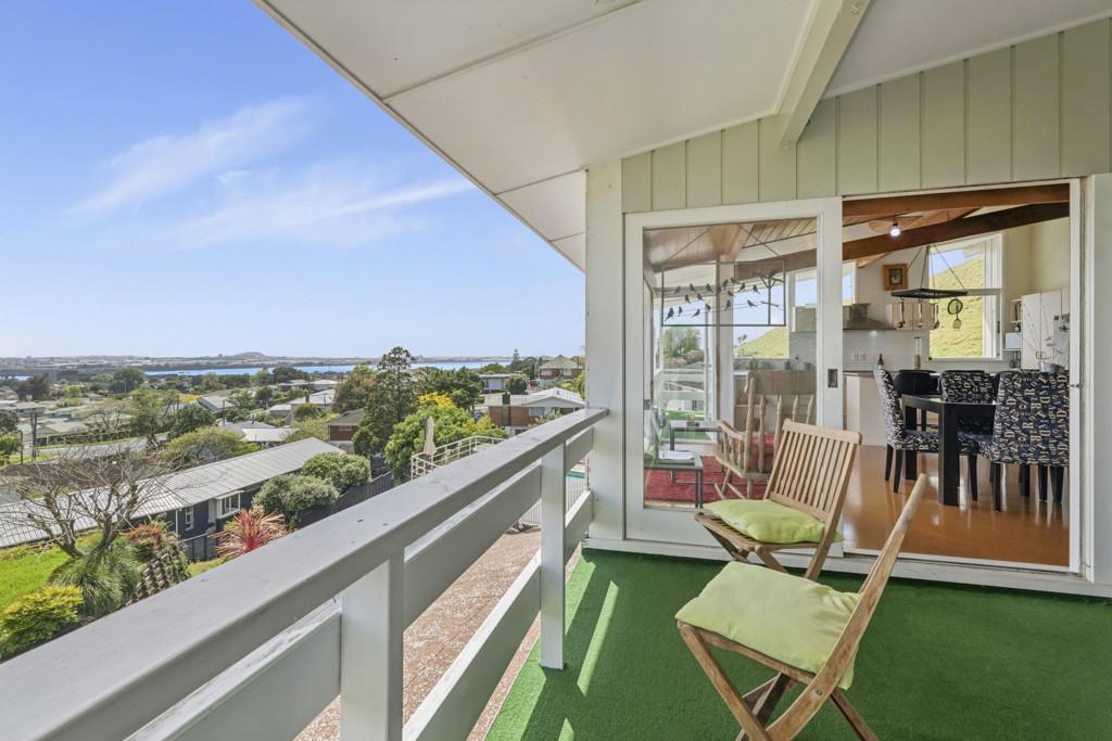 Outdoor living shines with a north-facing balcony perfect for morning coffees or evening relaxation. The patio overlooks the lush surroundings, offering space for outdoor dining and play. From sunrise to sunset, you'll enjoy tranquil views and direct access to the scenic Mangere Mountain, perfect for walks and family adventures.