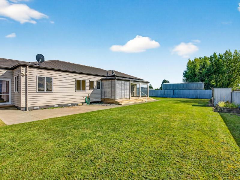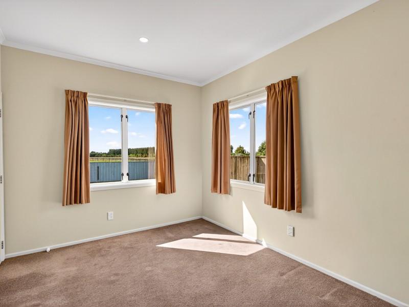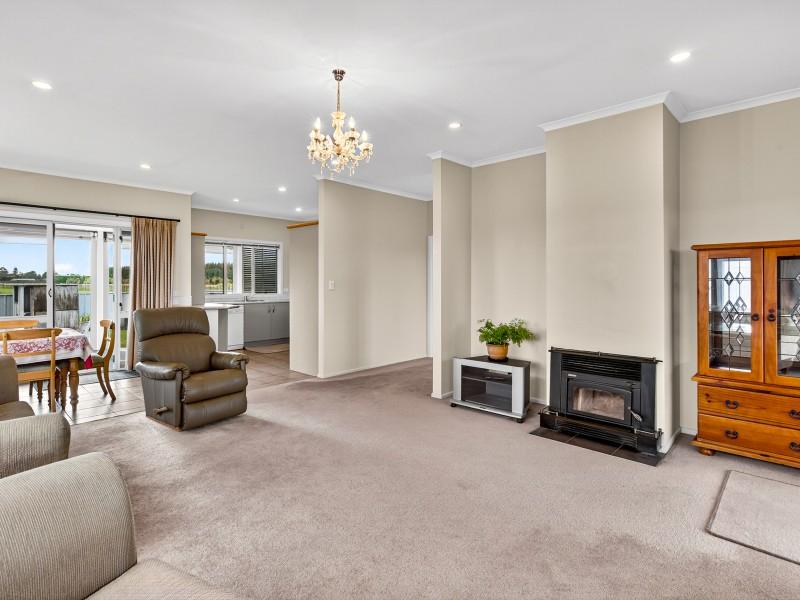 Built in 2004, the three bedroom home combines modern comfort with timeless appeal. The generous master suite includes a walk-in wardrobe and tiled ensuite, while the remaining bedrooms are well-sized for family or guests. The open-plan living area is the heart of the home, featuring great indoor-outdoor flow to a covered deck, the perfect spot for entertaining or relaxing while taking in the peaceful rural outlook. A fireplace and heat pump ensure year-round comfort, and the double integral garage provides secure, convenient access to the home.