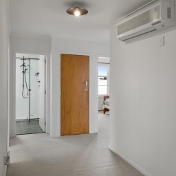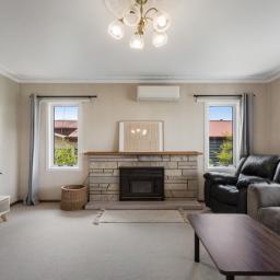 Wide hallways enhance accessibility and create a generous sense of space throughout, allowing larger furniture to fit comfortably. Filled with natural light, the lounge is welcoming and adaptable, with lovely views and room to configure as you like. An inbuilt woodburner and heat pump provide year-round comfort, while a second unit in the hallway adds extra convenience and climate control throughout the home.