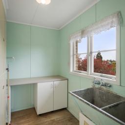Three well-proportioned bedrooms all include built-in wardrobes, with the master enjoying peaceful backyard views. The bathroom has been recently updated and includes a contemporary shower, bath, and dual vanity, while a separate toilet adds functionality. The laundry, though old-school, is practical and spacious with great storage options.