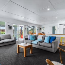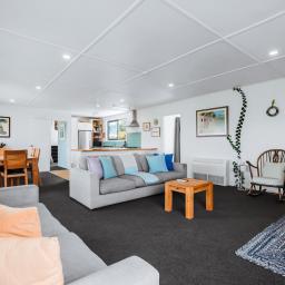 The kitchen has fabulous storage and a large island bench, ideal for morning catch-ups over lunches, getting made as breakfast, and sprinkling toast crumbs about. A dedicated dining area and spacious living room will capture the dinner parties to be had and the cosy movie nights in. This home is almost fully double-glazed, with three heat pumps keeping you warm during the winter months and cool in the summer.