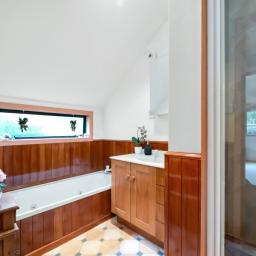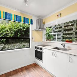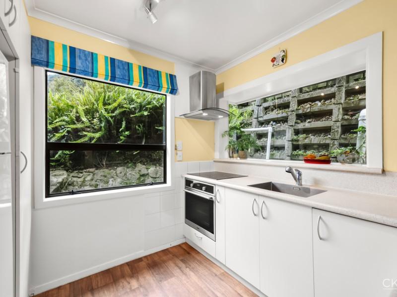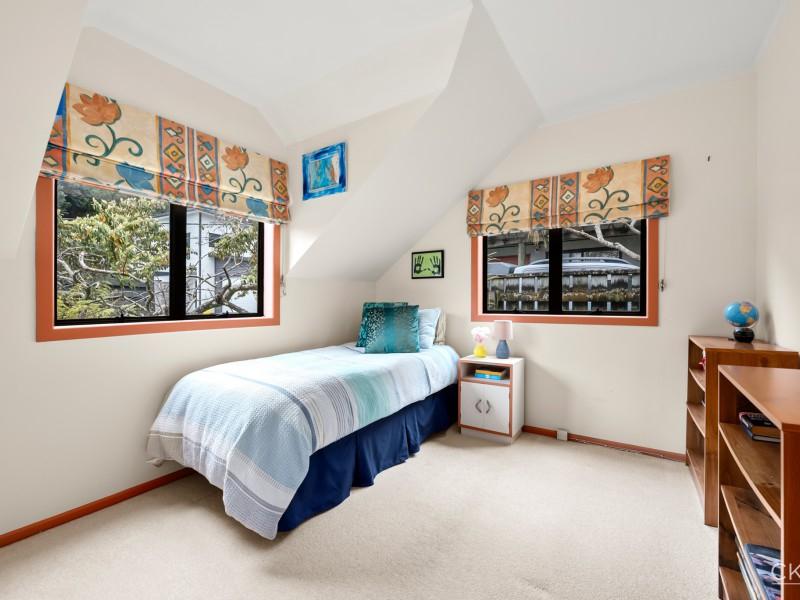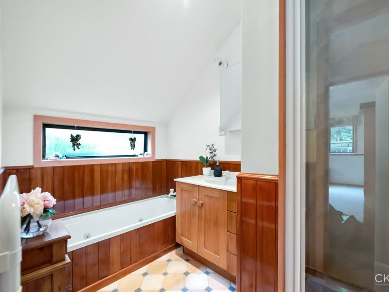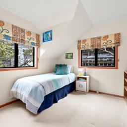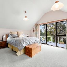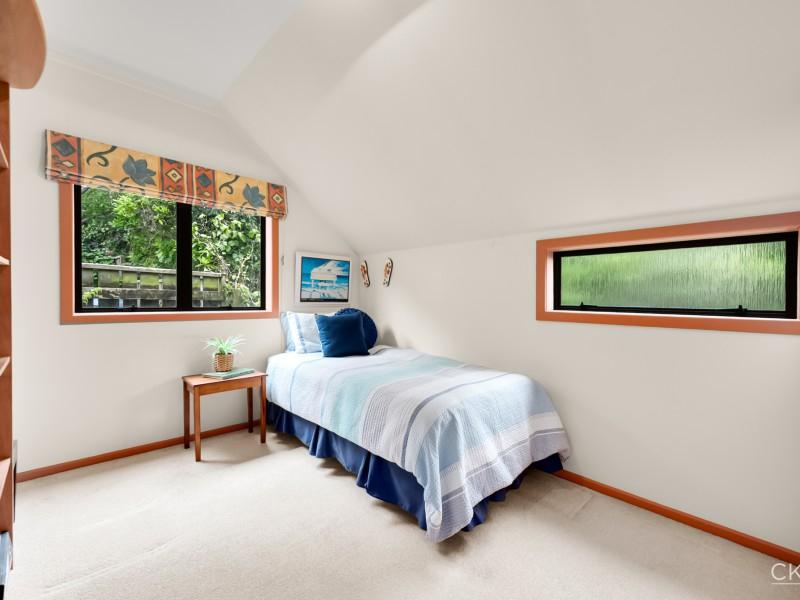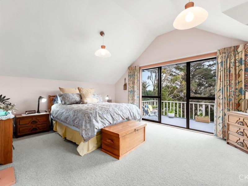 Upstairs, the spacious master bedroom opens to a sunny deck—ideal for morning coffee or evening relaxation—surrounded by lush greenery and birdlife. The home’s design captures natural light throughout, creating a warm and welcoming atmosphere all year round.