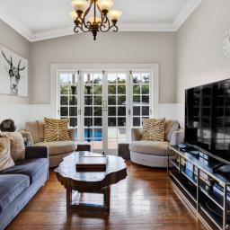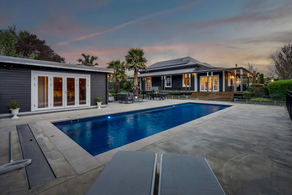 Outdoors, the property offers a true retreat. Sea and mountain views stretch into the distance, while flat lawns and structured gardens surround a productive orchard with over ten mature fruit tree varieties. A heated, saltwater inground pool with a self-cleaning system enhances the lifestyle on offer, while the spa and sauna are negotiable to the right buyer.