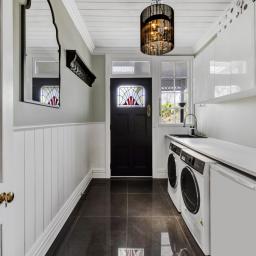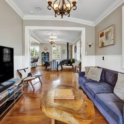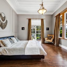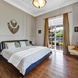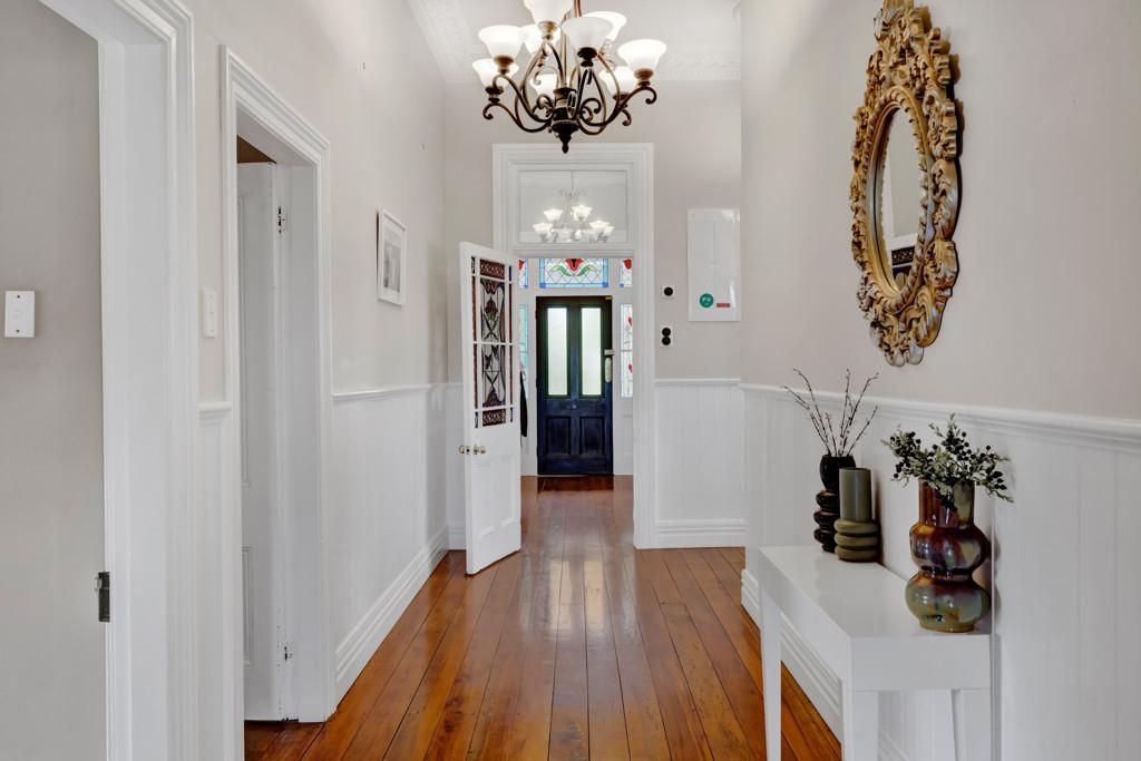Lovingly restored, the home showcases its original craftsmanship through solid timber floors, high stud ceilings, leadlight windows, and detailed wall panelling. Inside, four generous bedrooms include a refined master suite with floor-to-ceiling wardrobes and French doors opening to the wraparound covered veranda.