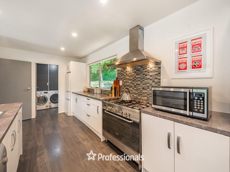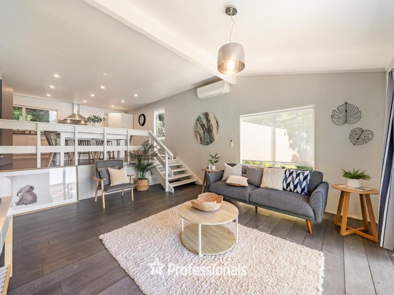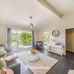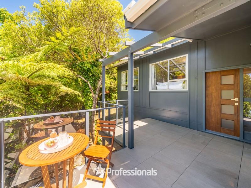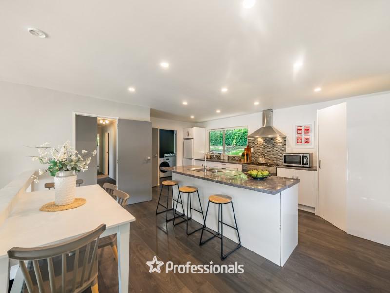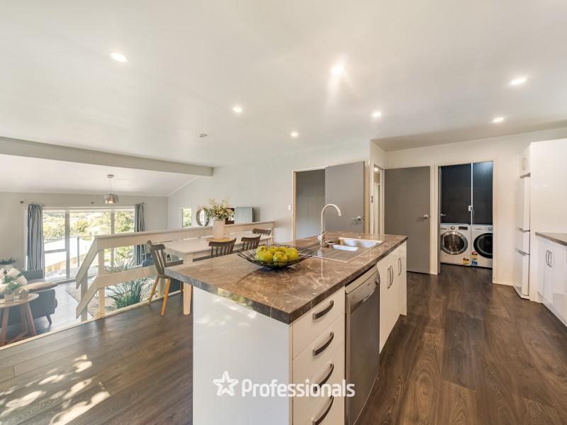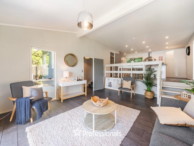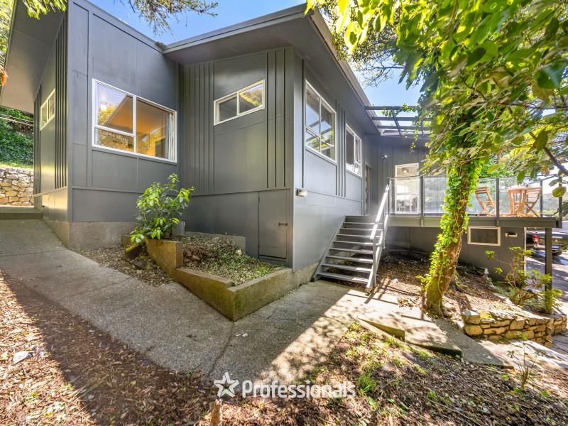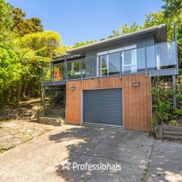 This funky 1970s build offers 3 bedrooms, a sunken lounge, an upgraded kitchen and bathroom, and a sunny large deck, this home offers lovely views and a single garage. Meeting healthy home requirements with heat pump, extraction fans and insulation.