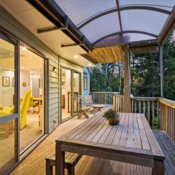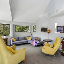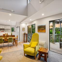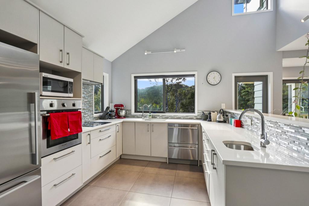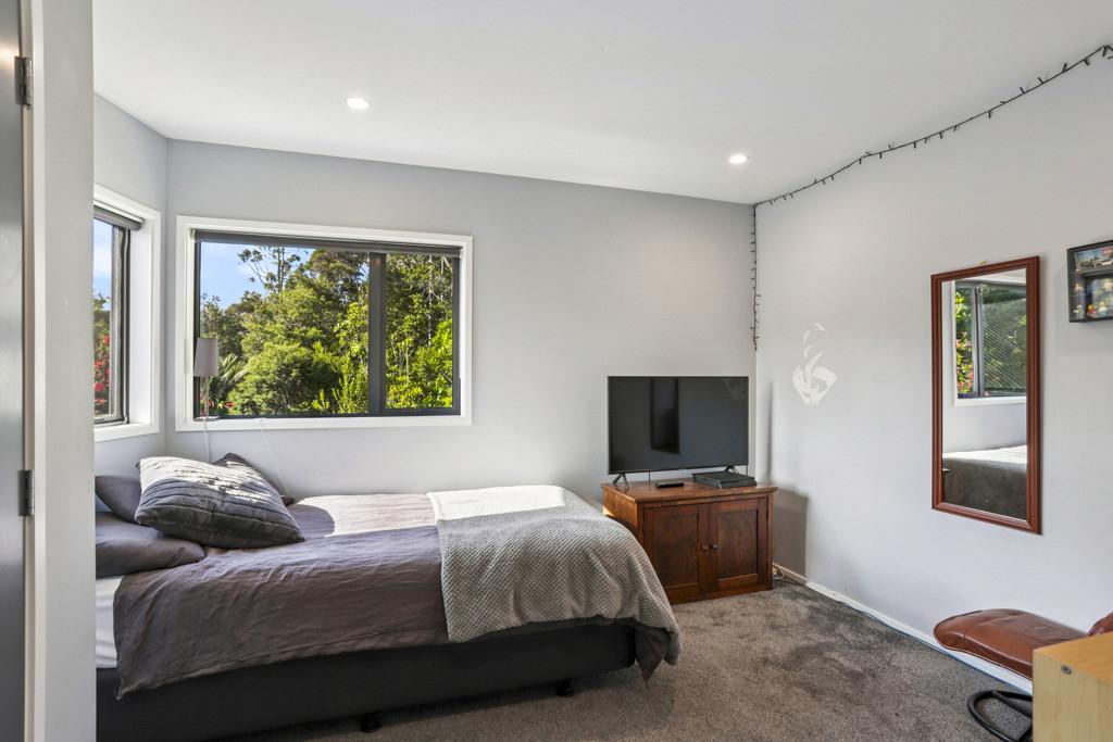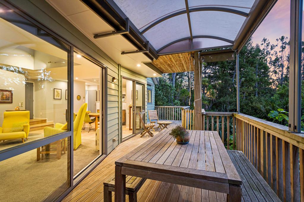 The section blends usable lawn with native bush alive with birdlife. A leafy walkway leads from the garden down to beautiful Bokel Bay, a favourite local spot for swimming, paddling, and unwinding. Excellent schooling is close by, including Laingholm Rudolf Steiner School and Laingholm Primary.