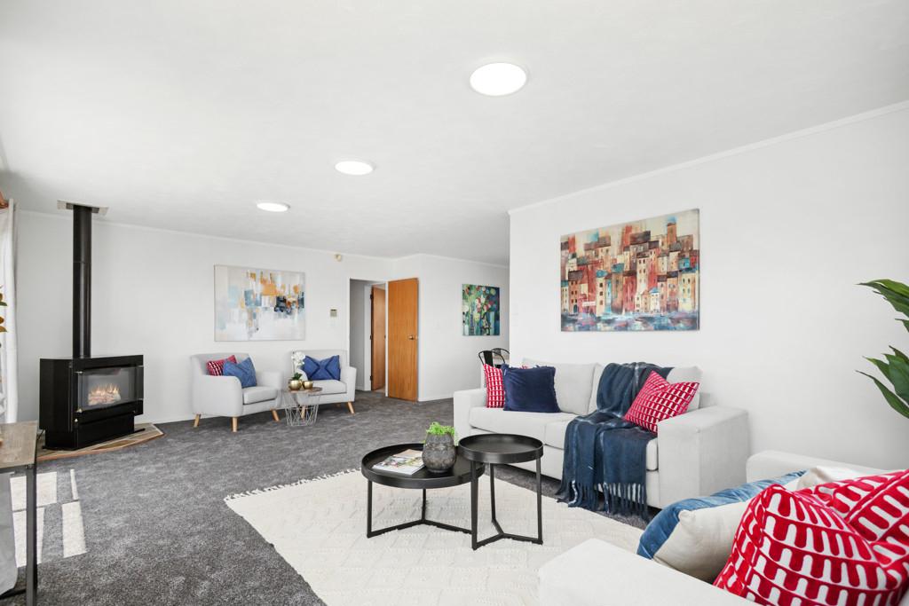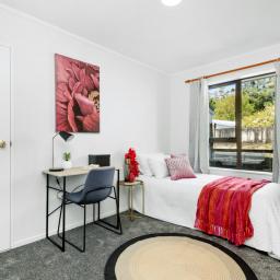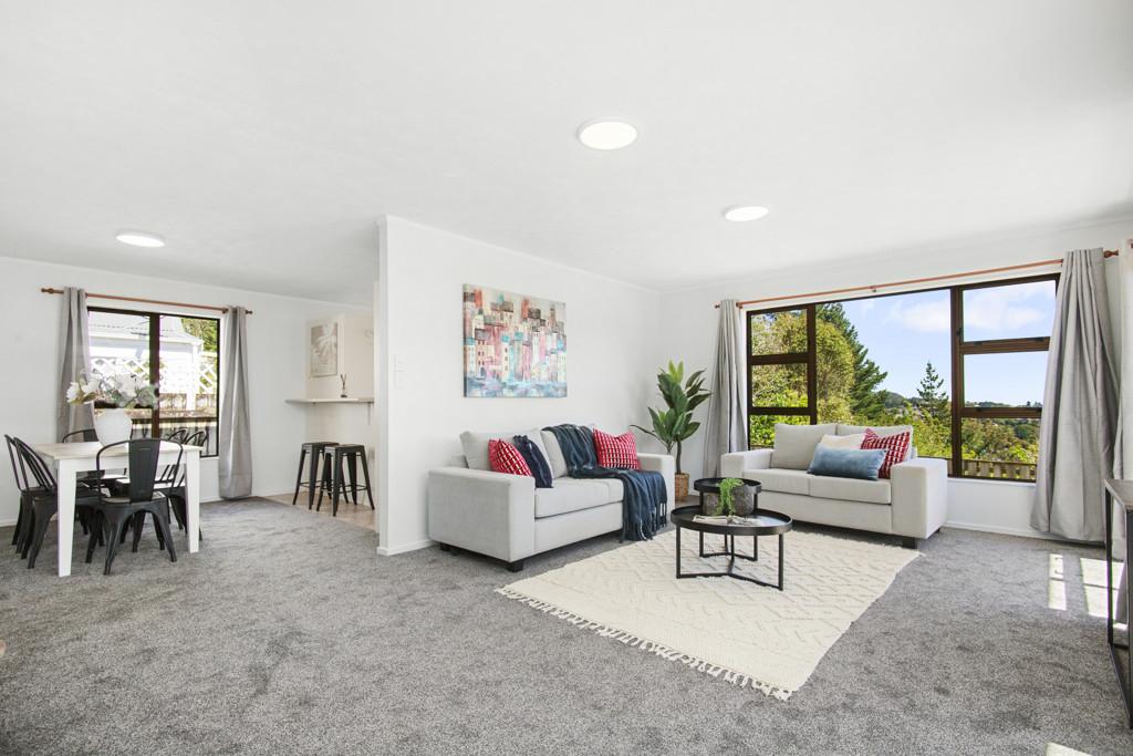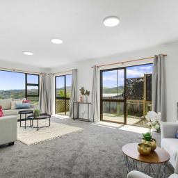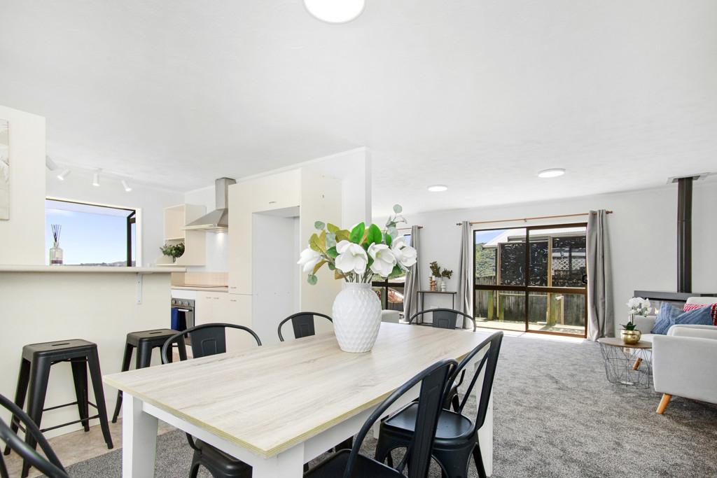 At the heart of the home lies a generous open plan living, dining, and kitchen zone. This light-filled space is ideal for everyday living and entertaining, offering flexibility and flow for modern lifestyles. Large windows frame the breathtaking views across the Hutt Valley and out towards Wellington City