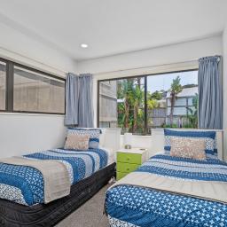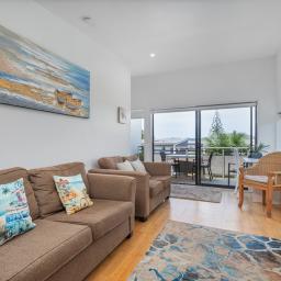 A nicely presented, two level villa in Aqua Soleil, with views over Mercury Bay. Situated across the road from Brophys beach; ideal for safe swimming, kayaking, fishing and launching the boat. A coffee cart for the morning caffeine fix is a short stroll away. Take a wander or cycle along Buffalo Beach coastal pathway to the main CBD of Whitianga and onto the ferry toward Cathedral Cove and Hot Water Beach.