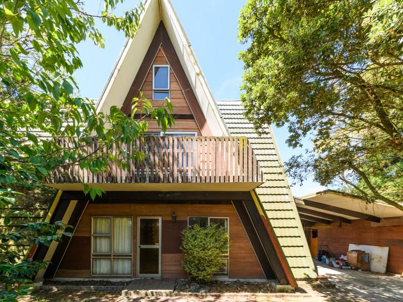 There’s nothing ordinary about this Ashhurst A-frame. Boldly architectural and instantly recognisable, this three-bedroom home offers an exciting opportunity for buyers who want space, character and creative potential. Set on a possibly sub-dividable 1214m2 section surrounded by established trees, the home features soaring ceilings, solid timber beams and light-filled rooms that open to the outdoors. Downstairs includes a large lounge, original kitchen and bathroom, while upstairs the bedrooms enjoy tree-top views and private balcony access. Much of the decor remains authentic 1970s – ideal for those who see beauty in retro details or who want to renovate and modernise with their own style. A covered carport and separate garage add practicality, and the location is hard to beat – quiet, leafy and just a short stroll to Ashhurst’s shops and school. This property is packed with possibilities – restore, revive or re-imagine an Ashhurst icon.