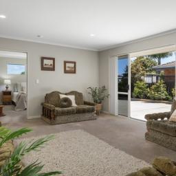 Built in the 2000s, this modern brick and aluminium home offers effortless living in the prestigious, sought-after neighbourhood of Totara Palms.