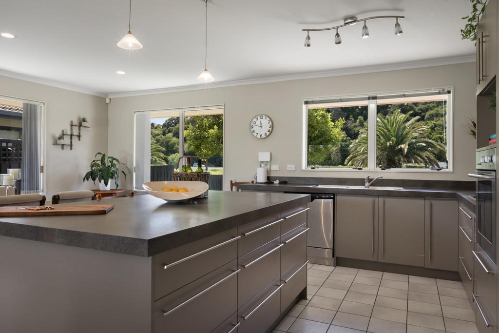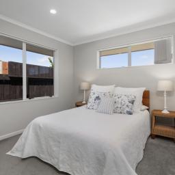 Both living spaces open via stack-back ranch sliders to a purpose-built concrete patio and flat, easy-care section with raised gardens-a safe, sunny space for children or simply to enjoy the outdoors, with double gates at the rear opening onto a spacious reserve, perfect for extra play.