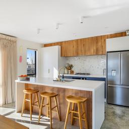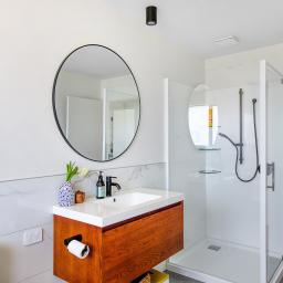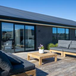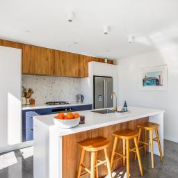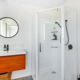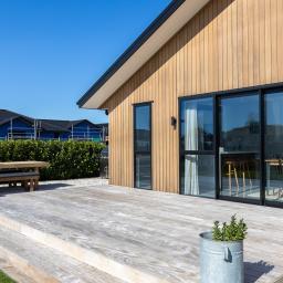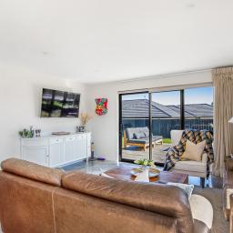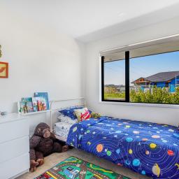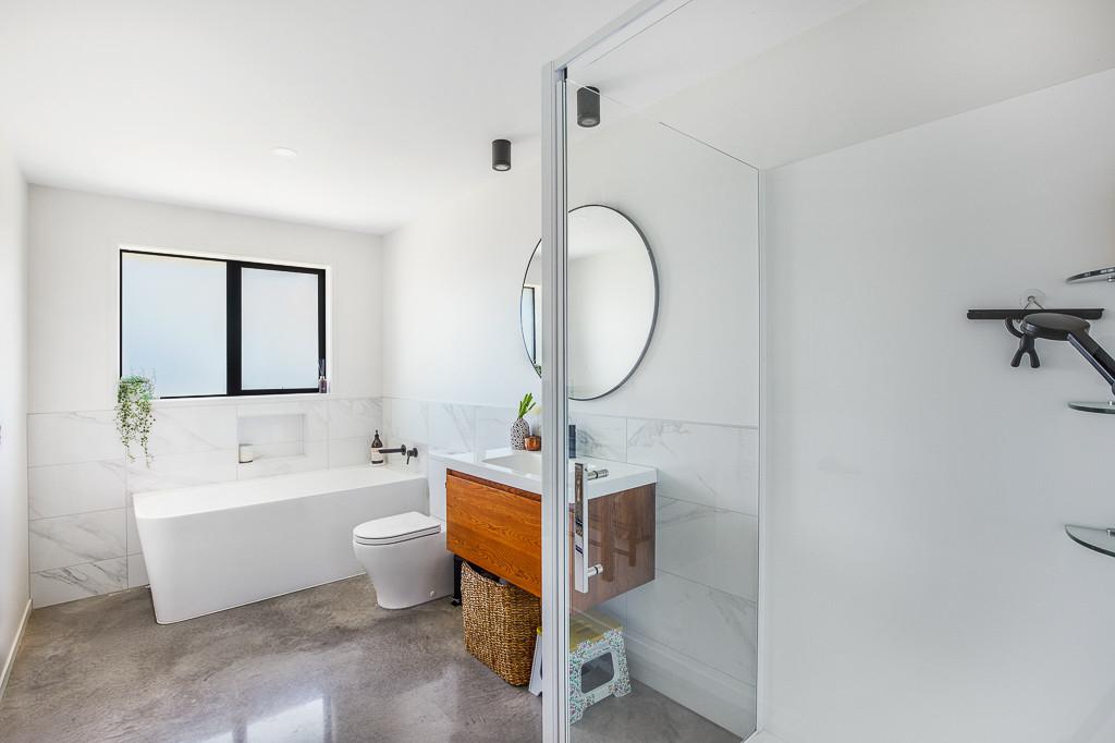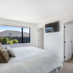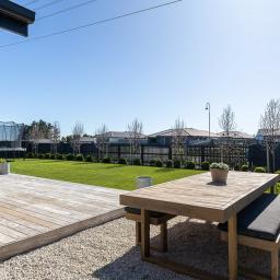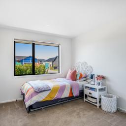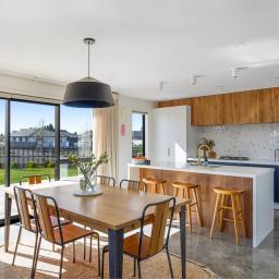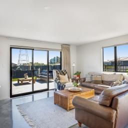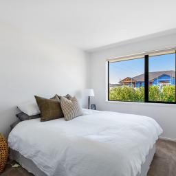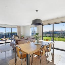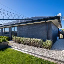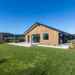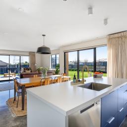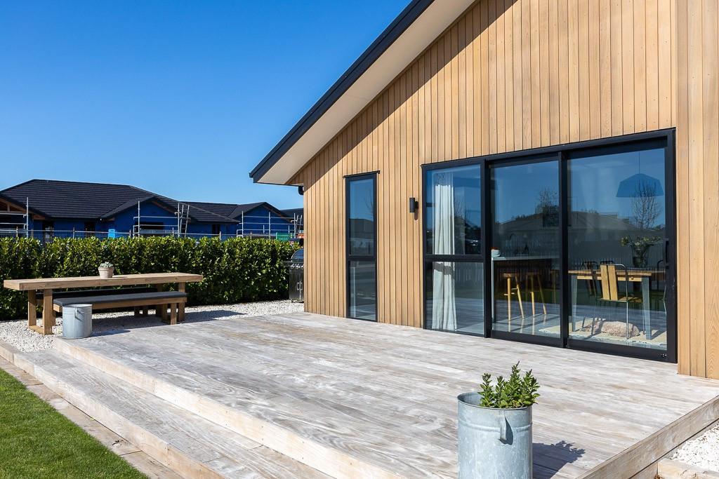 Set on a beautifully landscaped, tree-lined corner site, the property is framed by a striking black fence and a distinctive cedar gable end. Inside, the thoughtfully designed floorplan maximises natural light and space, with north-facing open-plan living and kitchen areas that bask in all-day sun. The neutral interior palette is fresh and inviting, while premium features such as stacking slider doors showcase the craftsmanship and attention to detail throughout.