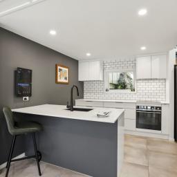 Designed across split levels, the home unfolds in delightful stages. Three bedrooms and two bathrooms are positioned with both privacy and connection in mind, while the contemporary kitchen with butler's pantry anchors the open plan living. Soaring ceilings, natural light and modern finishes create an uplifting and effortlessly stylish environment.