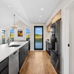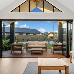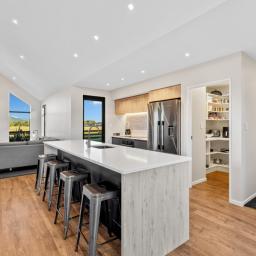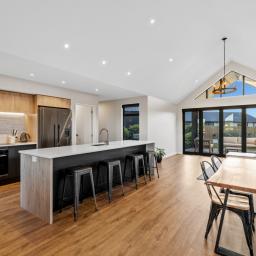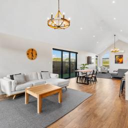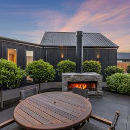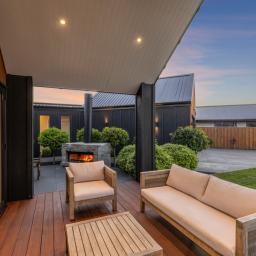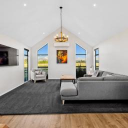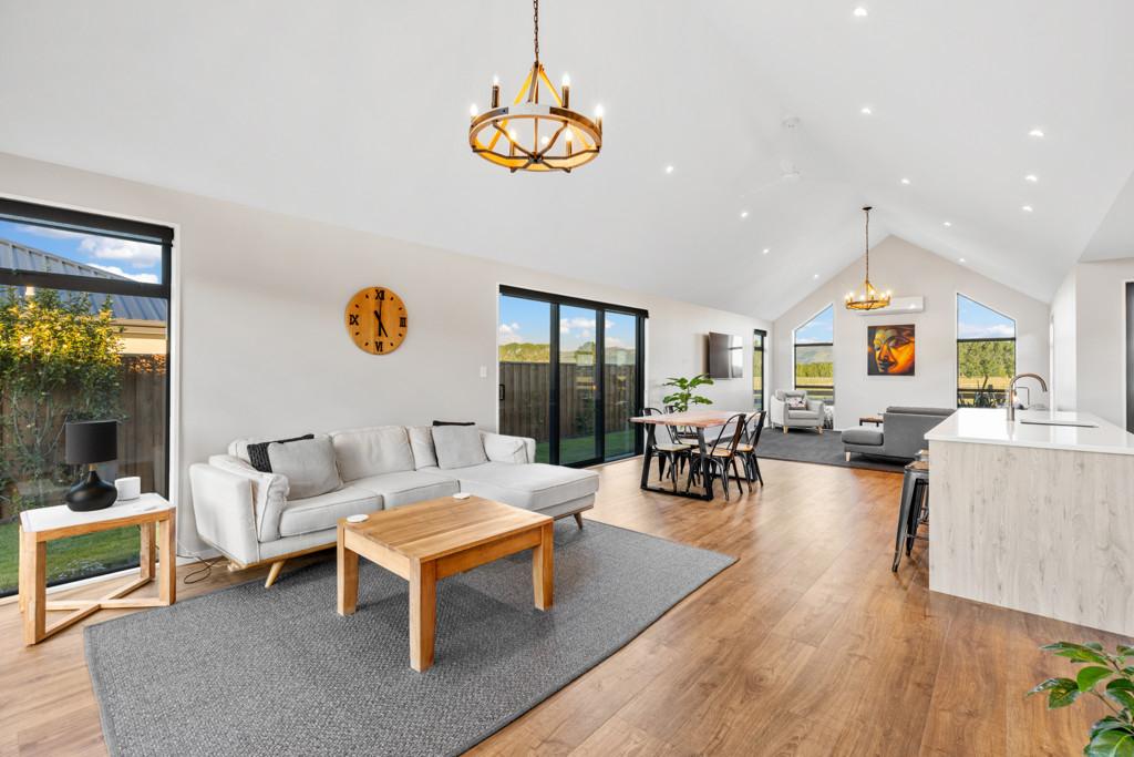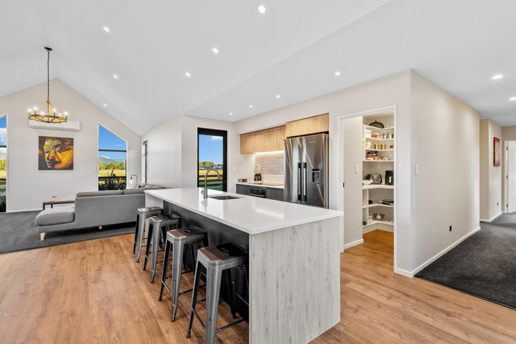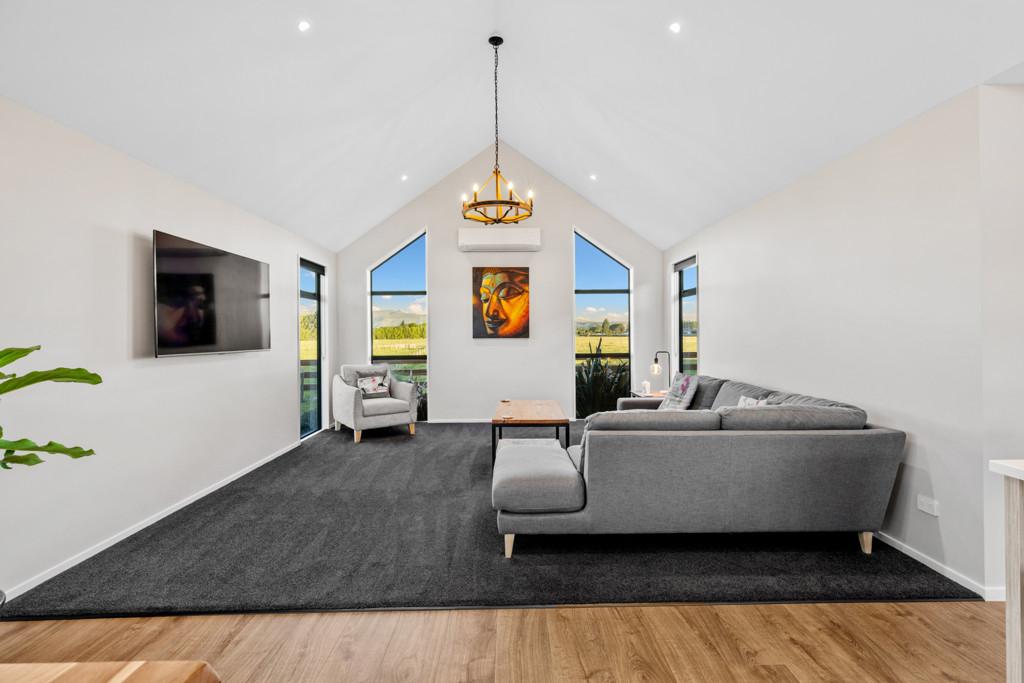 This large open-plan space captures unobstructed rural views in one direction, while the other side opens seamlessly to a covered alfresco area with Kwila decking, a purpose-built outdoor fire, and an inviting patio-perfect for year-round entertaining.