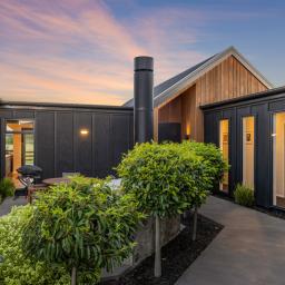 Situated privately on a 749sqm section, this architecturally designed home enjoys a peaceful rural outlook and captivating Port Hills views. Constructed in 2020 by HS Builders and backed by a Master Build Guarantee, it combines exceptional craftsmanship with contemporary design and standout cedar detailing.
