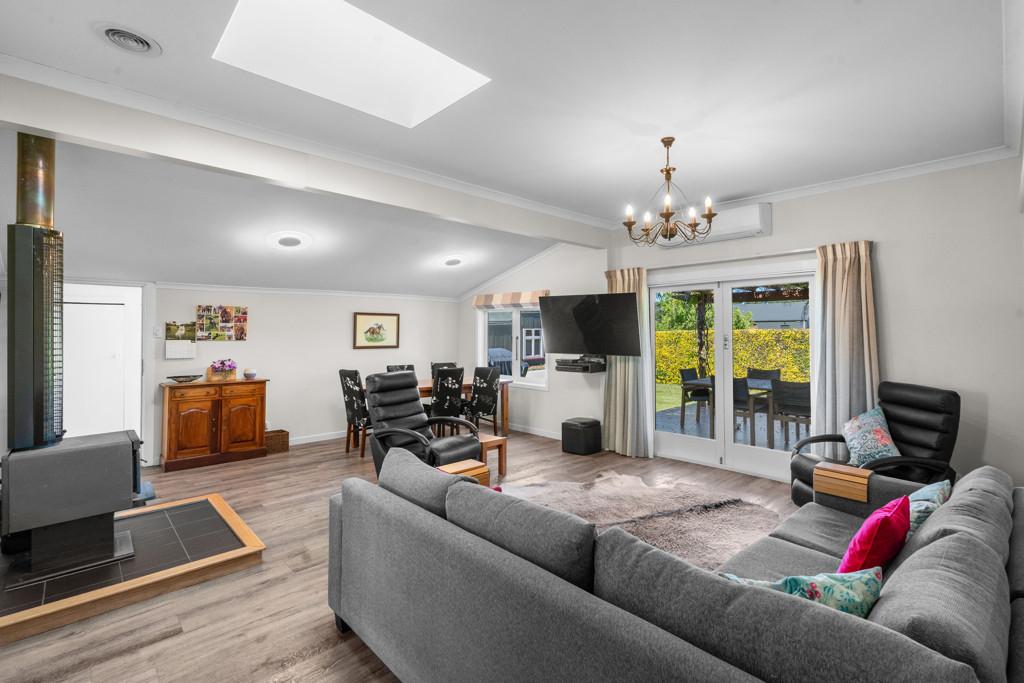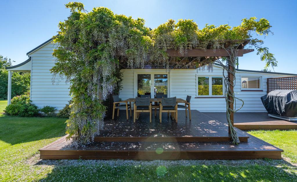 The three-bedroom, two-bathroom home offers warm, relaxed country living with a wetback fire, open-plan design, and a layout that flows easily to the outdoors. A double garage sits close by for easy access, while established shelter belts frame the property for privacy and protection.