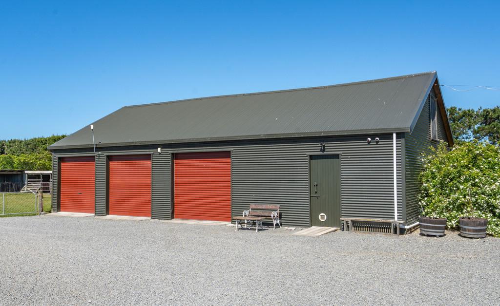 • Large three-bay shed with attached workshop for machinery, storage, or projects