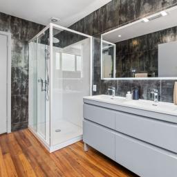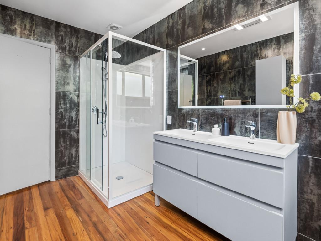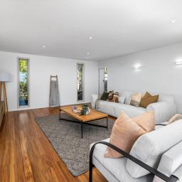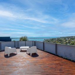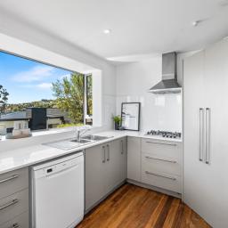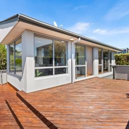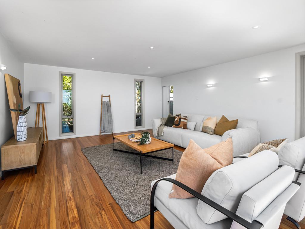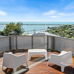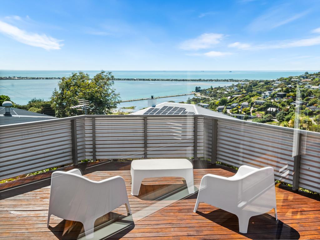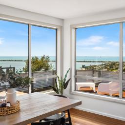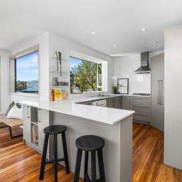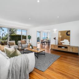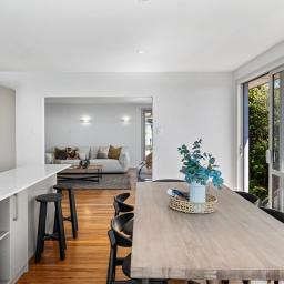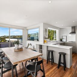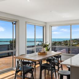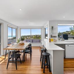 The open-plan kitchen and dining spill onto a sun-soaked deck - the perfect spot for morning coffee, relaxed family dinners, or summer BBQs with friends. From here, enjoy captivating views across the ocean and estuary, a daily reminder of this home's special setting.