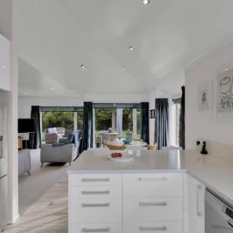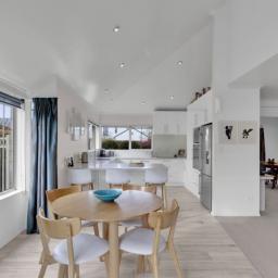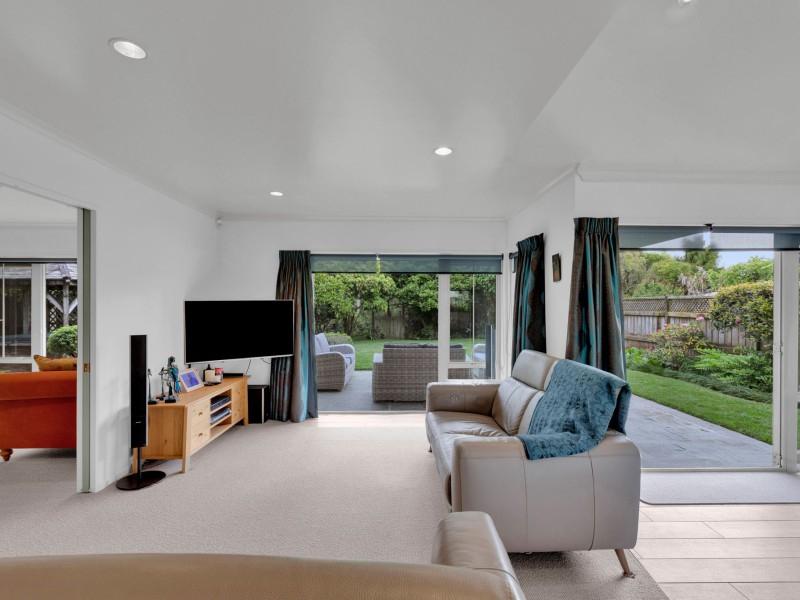 Built in 1996, the home welcomes you with light-filled interiors and a layout that balances family functionality with easy elegance. The open-plan kitchen, dining, and living areas provide a warm and inviting hub for daily living, while the second lounge offers a quiet retreat for relaxation or entertaining. The contemporary kitchen features quality appliances, generous storage, and a breakfast bar, making it ideal for family meals and social gatherings alike.