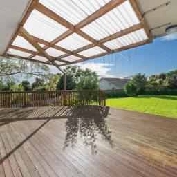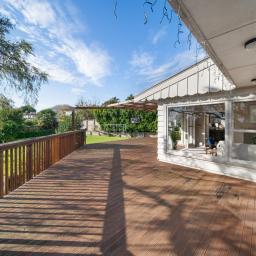 Entertain or unwind on the expansive rear deck, perfectly framed by landscaped gardens and mature greenery, creating a tranquil sanctuary for family gatherings or quiet relaxation.