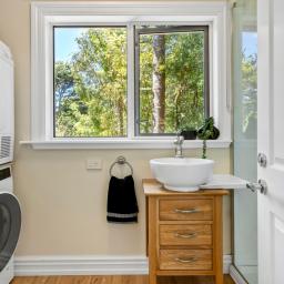 Upstairs, the open-plan living spills onto expansive decks, perfect for stargazing or Sunday brunches overlooking the untouched reserve below. Meanwhile, the downstairs second living area tells its own story, a realm for teenagers to game, host, or retreat, while the upstairs remains a quiet haven for reflection or celebration.
