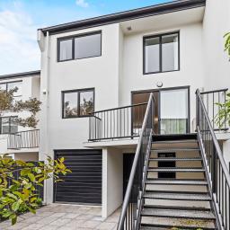 Refined, stylish, and entirely elevated, this pre-cast concrete three-bedroom townhouse epitomizes modern Merivale living.