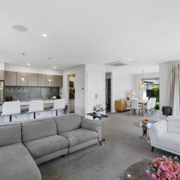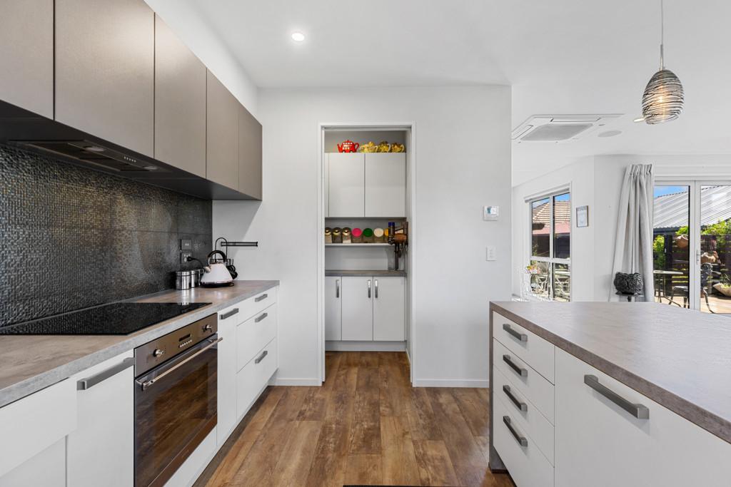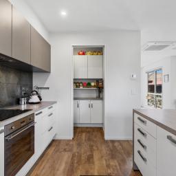* Open plan kitchen (with walk-in pantry), dining, and living area