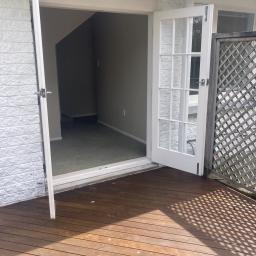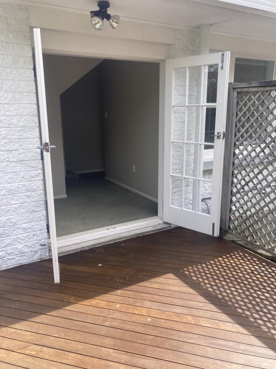 French doors leading to sunny deck from study.
