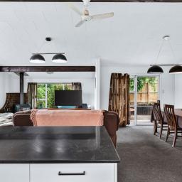 The heart of this home is a spacious, open-plan living area. Notice the incredible natural light streaming in-that's the advantage of this prime north-facing aspect, ensuring sunshine floods this space from morning until afternoon. It's the ideal environment for entertaining friends, keeping an eye on the kids while you cook, or simply relaxing after a long day.