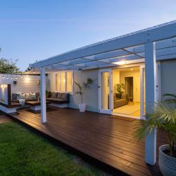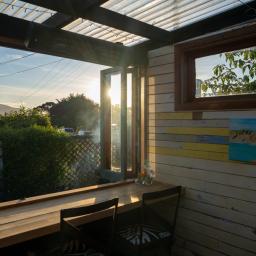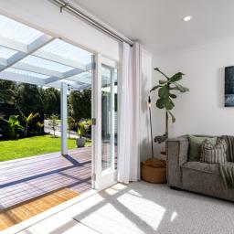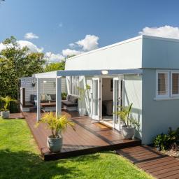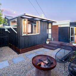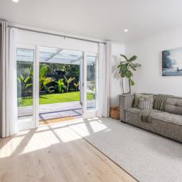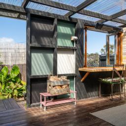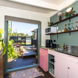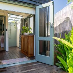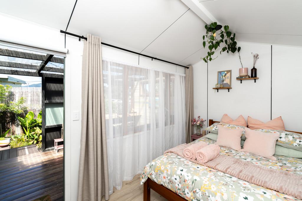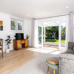 Privately accessed, "The Lily Pad" is a thriving holiday accommodation. This fully self-contained space includes a sheltered living area, kitchenette and bathroom, complete with an outdoor shower - ideal after a surf or swim. With it's own heat pump and power meter, it offers full independence and privacy from the main home, making it perfect for guests, extended family, or an income stream through Airbnb.