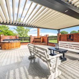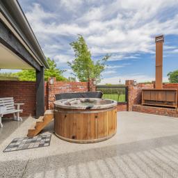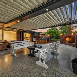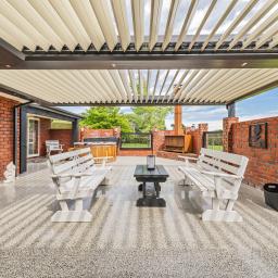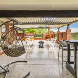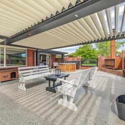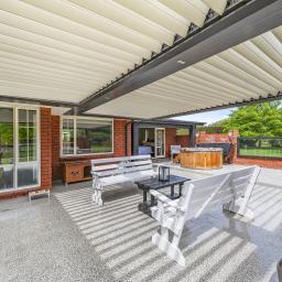 Step outside to discover the true magic of this property. An entertainer's dream awaits with an extraordinary outdoor living space, featuring porticos and two grand Johnson & Couzins louvres overlooking an expansive polished concrete patio. Here, the boundaries between indoor and outdoor living dissolve, creating a space perfect for year-round enjoyment.