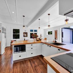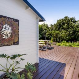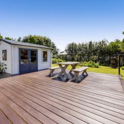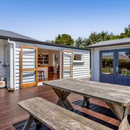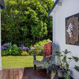 The brand-new deck is made for lazy mornings and long evenings, the kind where dinner drifts outdoors and the sound of the surf hums in the distance. The gardens are lovely, framing the home with colour and vitality, and there's even a chicken run for those who like their eggs fresh.