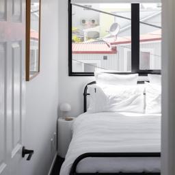 Perfectly positioned in the heart of Mount Victoria, this home blends modern comfort with urban character. Formerly the garage of the neighboring property, it has been cleverly transformed into a contemporary residence that celebrates its industrial heritage - with exposed concrete walls, steel beams, and a sleek, minimalist design.