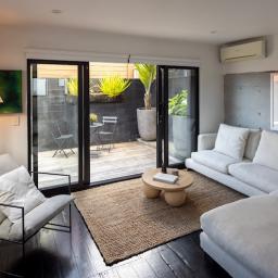 On ground level, you'll find an open-plan living and dining area with a sleek entertainer's kitchen - perfect for hosting friends or relaxing at home. French doors open to a sunny, north-facing courtyard, perfect for morning coffee, summer barbecues, or relaxed entertaining.