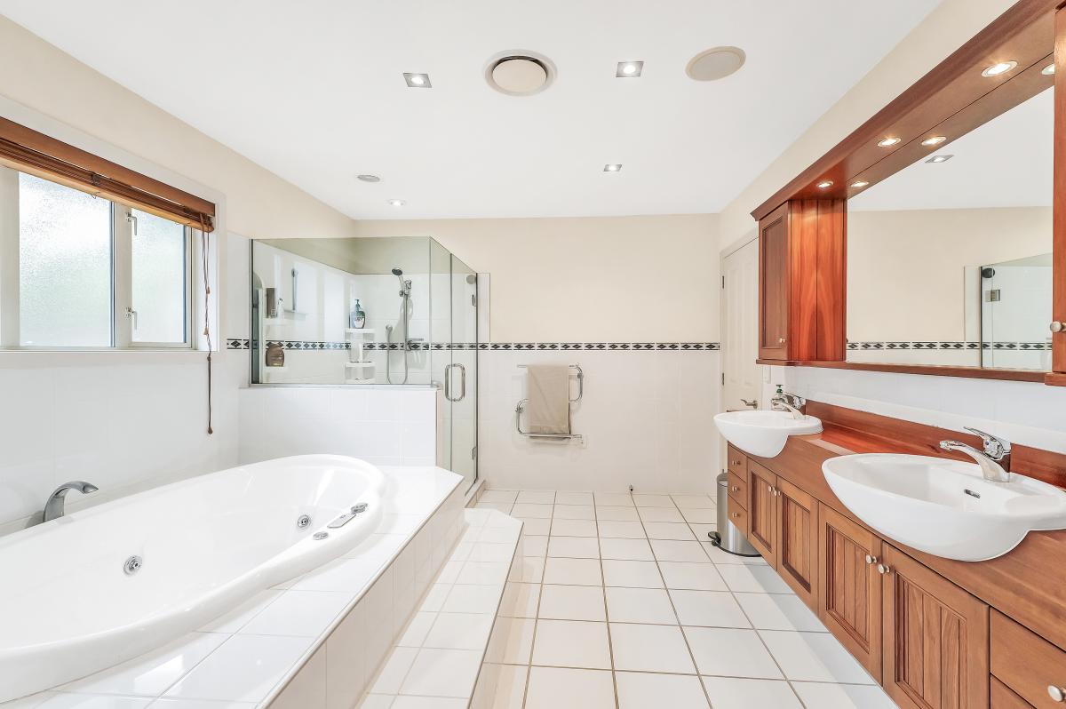 Down the hallway off the main living room, you'll find four generous bedrooms, including a master suite that redefines opulence. Indulge in the walk-through wardrobe and the vast and luxurious tiled ensuite, complete with a spa bath, extra-large shower, and double vanity. The impressive family bathroom boasts full tiling, a separate bath and shower, and modern fixtures.