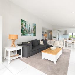 The single-level layout connects seamlessly to sun-soaked decks, an entertainer's paradise, and a covered spa area made for year-round relaxation. Every detail has been meticulously refreshed - from the contemporary kitchen with captivating views to the open-plan living that invites connection and comfort.