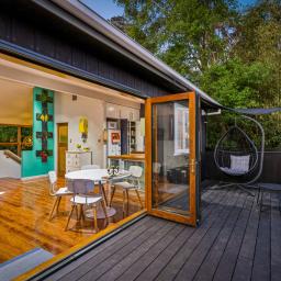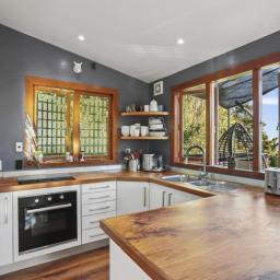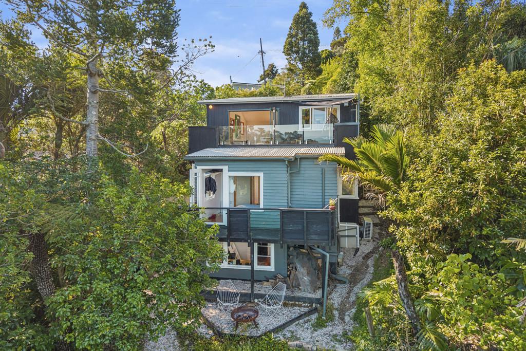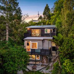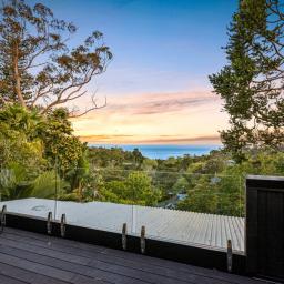 With picturesque views over the Manukau Harbour, this home captures the essence of Titirangi living. A private hideaway that offers peace, space, and a creative atmosphere that feels instantly calming.