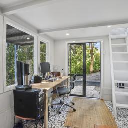 Downstairs there is a workshop that would be perfect for an artist's studio, as well as a laundry and storage area. Quality cedar cladding and timber window joinery give the house a timeless appeal.