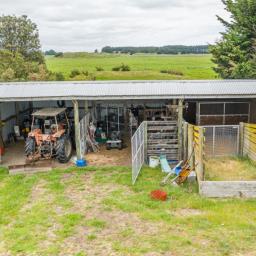 The land is divided into eleven well-fenced paddocks, predominantly flat, and supported by ample shedding, and stock yards with ramp plus float loading ramp. Additional features include a dog kennel setup, chicken house, established fruit trees, and both a bore for farm water and rainwater collection system for the home.