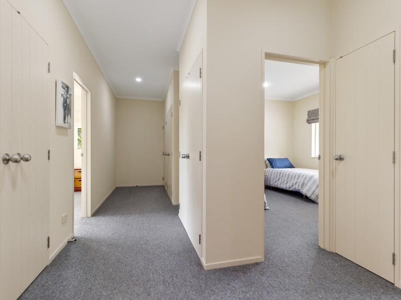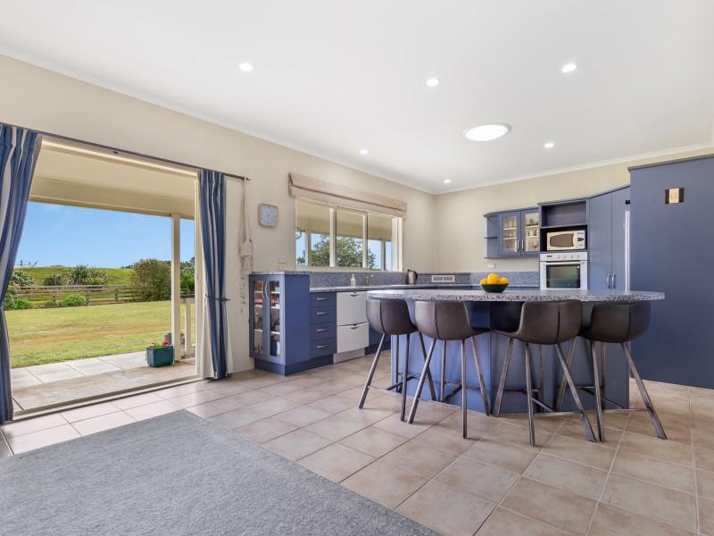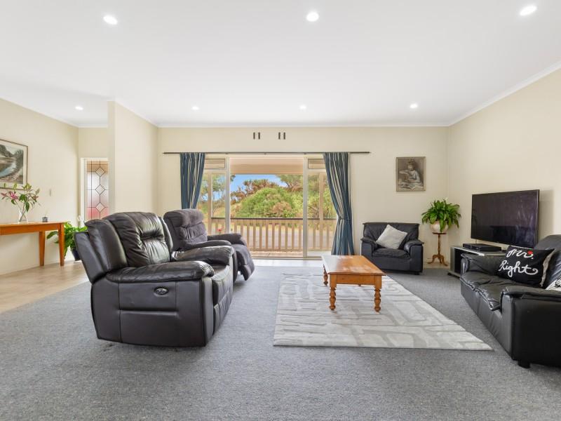 At the heart of the home, the open-plan kitchen, dining, and living area offers seamless flow and a welcoming atmosphere, with a central island bench and views across the private section. Comfort is assured year-round with a wood burner and excellent insulation, while a double internal-access garage completes the picture.