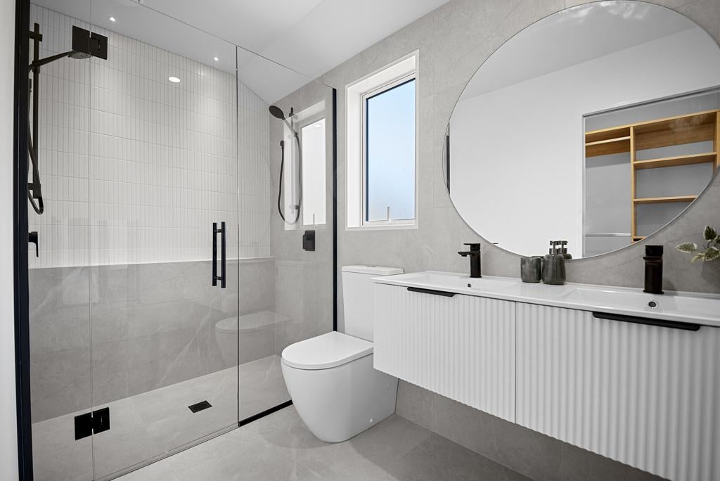 Accommodation is well catered for with four double bedrooms, including a luxurious master suite complete with a tiled ensuite and walk-in wardrobe. The stylish family bathroom features both a bath and shower, plus a separate toilet with its own vanity for added convenience.