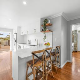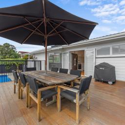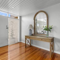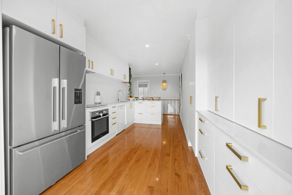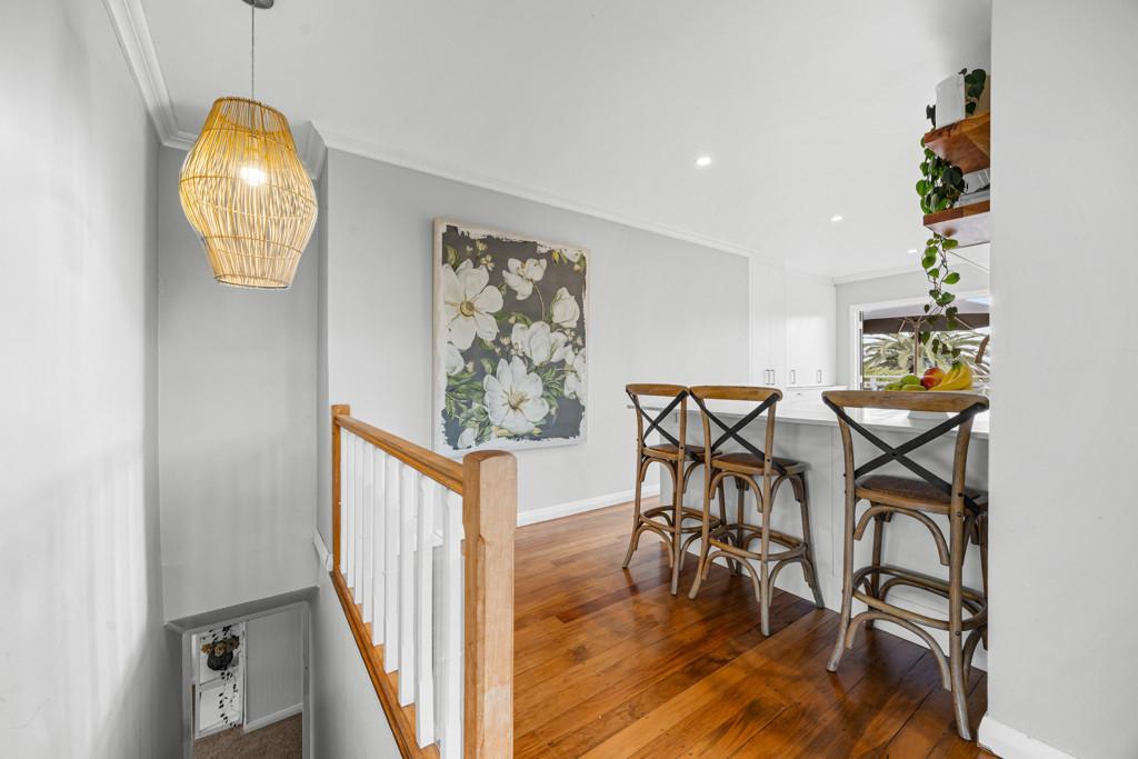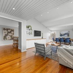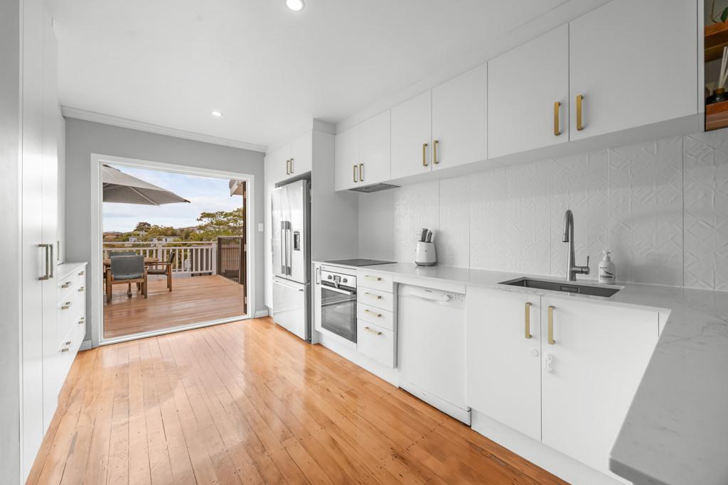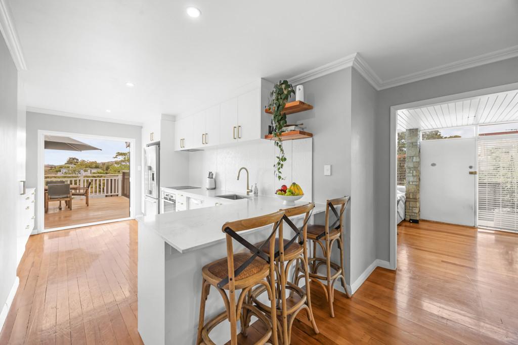 From the moment you walk through the front door at 48 Ellesmere Crescent, everything feels bigger: the high, light-filled living, the stretch of timber floors, and that pull towards the deck where the view opens up over treetops and water views.