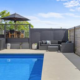 Then there's the pool. Sun-drenched, private, and framed by clean concrete and fencing, it feels like your own little resort. Think after-school swims, weekend BBQs, birthday parties that go from daylight to fairy lights.