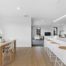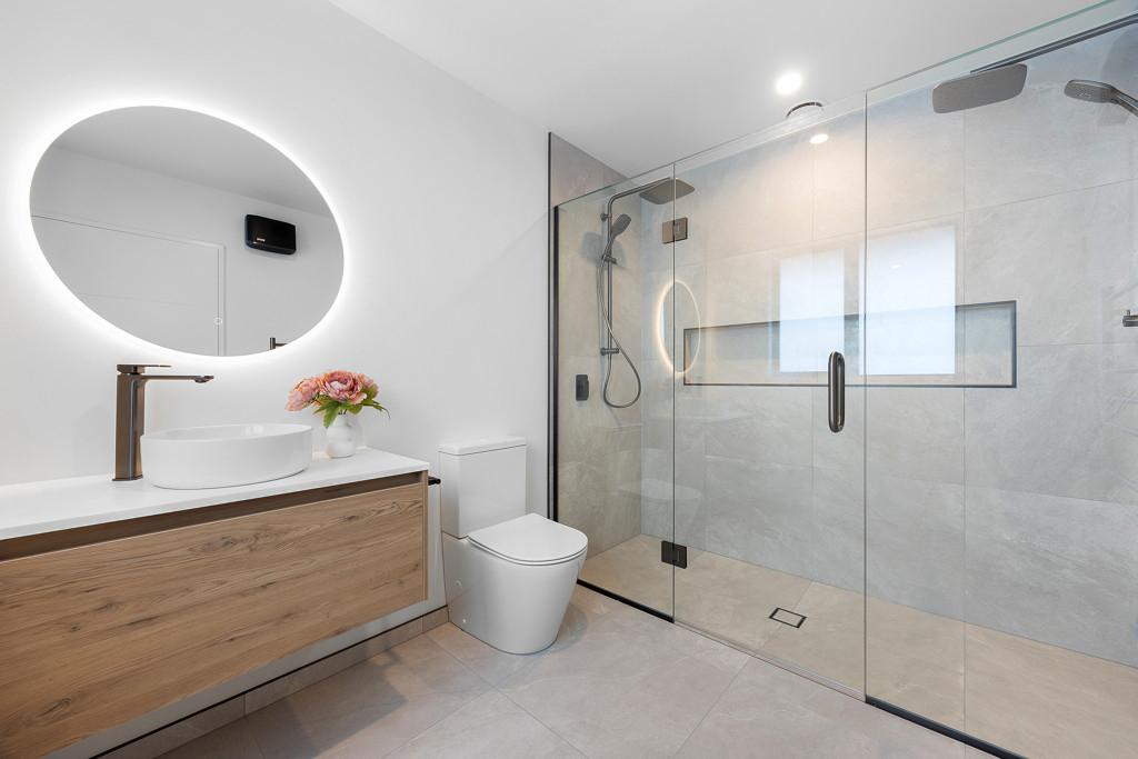 Comfort is a constant, thanks to underfloor heating in the bathrooms, tiled showers, heated towel rails, and the Daikin ducted heat pump system keeping the entire home cosy year round.