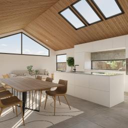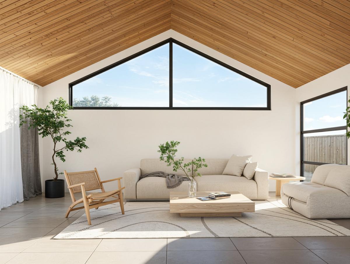 As you step inside, the vast living area greets you with soaring cathedral ceilings adorned with timber cladding, creating a warm, inviting atmosphere that's ideal for family gatherings. The high-end modern kitchen, with its glistening skylights and large walk-in pantry, sits at the heart of this home, ready to host your culinary adventures.